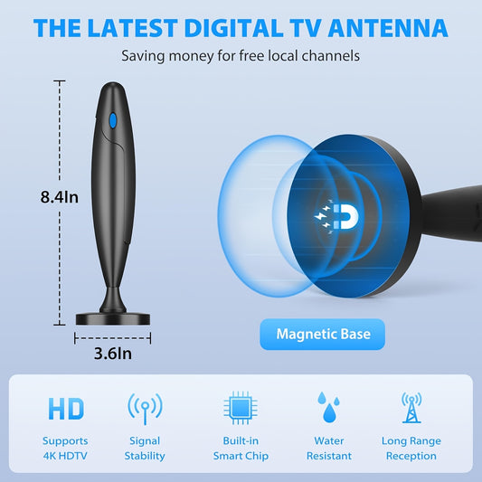 2025 Smart Indoor TV Antenna with Powerful Magnetic Base & 360° Rotation, Long Distance Reception, Easy Cable-Free Installation for Clear Local Channels